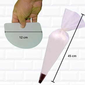 Kit confeiteiro com maleta, manga em silicone e 8 bicos em inox (crespo 1m, folha, liso 0, pitanga 1b, serra, babado pétala). Bicos grandes com emenda.Tipo