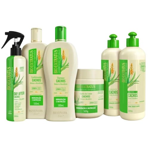 Anúncio composto por: 01unid. Shampoo Bio Extratus Cachos 500g 01unid. Condiconador Bio Extratus Cachos 500g 01unid. Máscara Bio Extratus Crespos 500g 01unid. Finalizador Bio Extratus Crespos 500g 01unid. Gelatina Bio Extratus Crespos 500g 01unid. Day After Bio Extratus Crespos 300ml