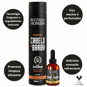 Este anúncio contém: 01 (um) Kit Cabelo & Barba - Bio Extratus Homem