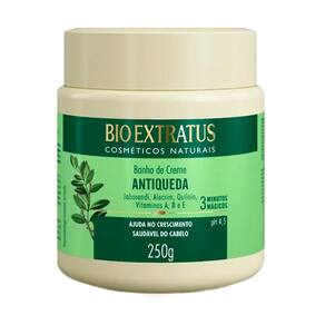 "O Kit Bio Extratus Jaborandi Antiqueda é composto por um shampoo, um condicionador, uma máscara capilar e um finalizador, é indicado para cabelos com queda e atua nutrindo o bulbo capilar, estimulando o crescimento e auxiliando o tratamento antiqueda. Essa linha possui uma fórmula enriquecida com extratos vegetais e vitaminas, que fortalecem e restauram os fios.