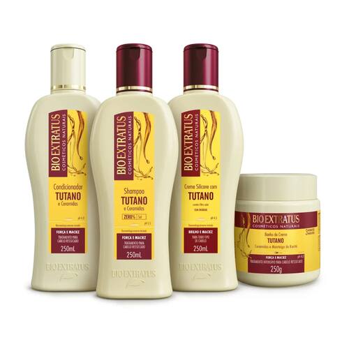 O Kit Bio Extratus Tutano com Shampoo, Condicionador, Máscara e Silicone oferece hidratação intensa, reconstrução e proteção para cabelos secos e fragilizados. Enriquecido com tutano, fortalece os fios, reduz o frizz e deixa os cabelos macios, brilhantes e saudáveis.