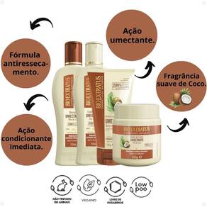O Kit Bio Extratus Umectante Óleo de Coco oferece uma experiência completa de cuidado e nutrição para os cabelos. Composto por Shampoo 250ml, Condicionador 250ml, Banho de Creme 250g e Finalizador 150g, este kit é perfeito para quem deseja hidratação profunda e reparação intensa. O Shampoo realiza uma limpeza suave, removendo as impurezas sem ressecar os fios, enquanto o Condicionador garante uma hidratação imediata, deixando os cabelos mais macios e fáceis de desembaraçar. O Banho de Creme proporciona uma hidratação intensiva, restaurando a vitalidade e o brilho dos fios, sendo ideal para um tratamento mais profundo.