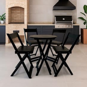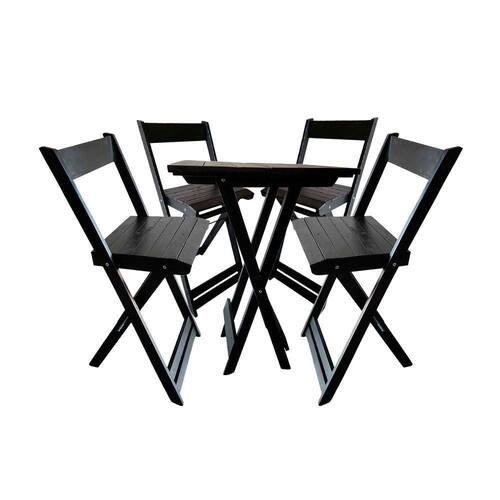 Kit Bistrô Pinus Dobrável com 4 Banquetas de Madeira