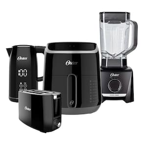 Kit Oster Black com Fritadeira Digital 3,2L, Chaleira Digital 1,7L, Liquidificador 3,2L 1400W e Torradeira com 7 níveis de tostagem.Porta-fio