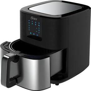 Kit Oster com Fritadeira Ultra Digital 4,8L (OFRT650) com painel touch, 8 funções pré-programadas, temperatura de 40°C a 200°C, função desidratar e 1500W de potência; e Blender Power Inox (OBLD750) com 2 jarras To Go (600ml tritan e 475ml inox), 4 lâminas em aço inox e 700W de potência.Porta-fio
