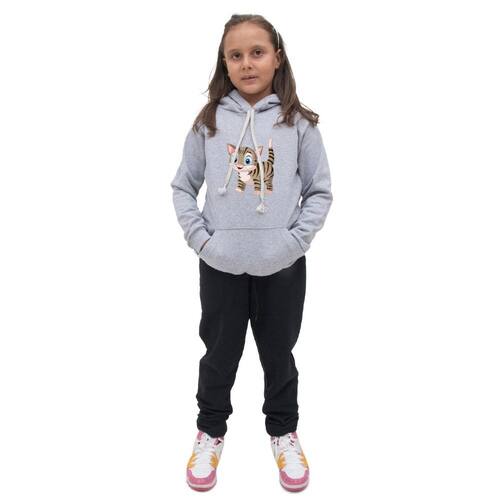 Kit Blusa Moletom Menina Infantil Canguru Com Calça de Frio Lisa Para Escola Passeio Moda Inverno - Cinza - 14