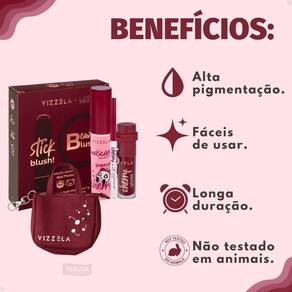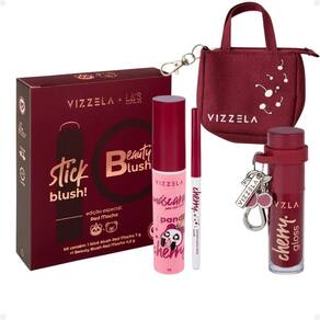 Kit: Blush Stick e Compacto Red, Lapiseira, Gloss e Máscara de Cílios Cherry + Mimo