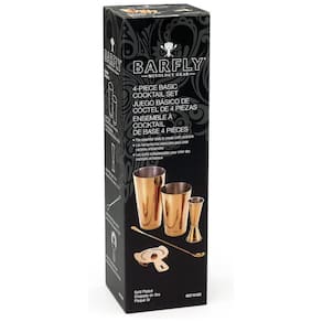 CONSTRUÇÃO DE QUALIDADE Trabalhada com aço inoxidável resistente banhado a ouro para manter a forma, esconder o desgaste e ter um desempenho consistentemente bom, mantendo uma aparência refinada. ESSENCIAIS DE BARWARE Um conjunto conveniente para fornecer os principais componentes para uma configuração básica de barra, inclui os grampos necessários para cada bn. FÁCIL DE LIMPAR Para maximizar o desempenho e a longevidade de seus produtos Barfly, recomenda se lavar as mãos com sabão neutro e água morna. Evite detergentes que contenham alvejante ou cloração pesada. EQUIPAMENTO DE MIXOLOGIA BARFLY Barware fino para o bn profissional ou o entusiasta em casa Barfly tem todas as ferramentas necessárias para ajudar a criar o coquetel perfeito