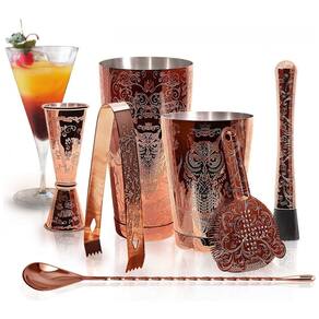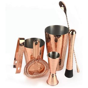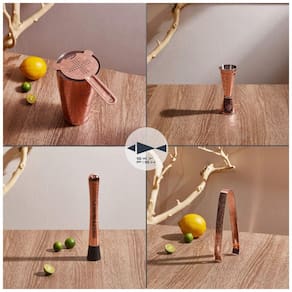 A coqueteleira banhada a cobre definida em SKY FISH é bastante delicada. Você tem certeza de amar e abraçar a maneira como eles são gravados com gravuras barrocas intrincadas e autênticas. O design simplesmente leva você de volta à era de ouro dos nobres. O kit de ferramentas de bar é único e perfeito para cada evento. Sua estrutura é elegante e elegante, o que os torna um complemento perfeito para sua cozinha requintada. A elegância do kit bartender e seu aço inoxidável de qualidade premium brilham com graça perfeita e adicionarão realeza à sua cozinha. Tem as clássicas gravuras delicadas dos tempos antigos. Apenas um bn como este pode igualar a nobreza e estatura. O boston shaker de cor cobre falou de realeza completa e classe nobre. Com esta coqueteleira na mão, você se sentirá requintado e poderá abafar todos os ruídos do dia. Desfrutar de um coquetel no final do dia com a máxima paz e puro e elegante conjunto de coquetéis é uma sensação que todos vocês devem estar ansiosos, ocasionalmente. E, com essas ferramentas clássicas de coqueteleira, você certamente se sentirá assim