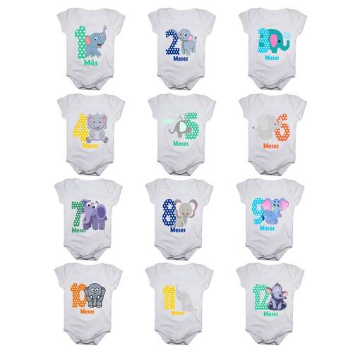 Body de bebê mesversario - kit com 12 peças