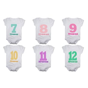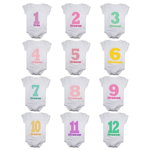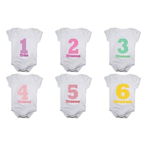 Kit body bebê mesversario manga curta números coloridos 12 bodies 1 a 12 meses - Único - Branco