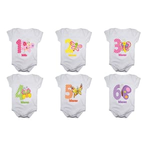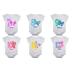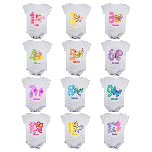 Kit body de bebê mesversario manga curta estampa borboletas 12 bodies 1 a 12 meses - Único - Branco
