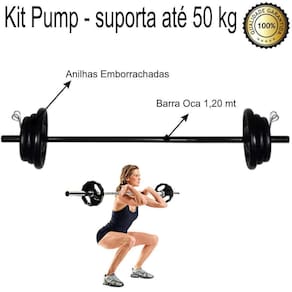 Kit Body Pump - Barra + 10 Kg De Anilhas Emborrachadas Peso: 2x4kg e 2x1kg Itens Inclusos:1 Barra para Body Pump 120 cm2 Presilhas para Barra10 kg de Anilhas Emborrachadas Descrição do Produto:Categoria: Profissional e Residencial Aumente a capacidade de variar treinos e alcance seus objetivos Você irá se exercitar com mais segurança, precisão e confiança, além de realizar diversos exercícios para membros superiores e inferiores, como: agachamento, avanço, supino, desenvolvimento, remada, triceps testa, rosca scott, entre outros. As anilhas revestidas têm fácil manutenção por serem fácil de limpar e serem revestidas contra oxidação. Podem ser categorizadas em exercícios de nível forte e utilizadas para aumentar a massa muscular e hipertrofia. Ficha Tecnica Material anilhasComposição: em material de Ferro fundido revestido em PVC;Cor: Conforme disponibilidade em estoque;Furo com em torno de 33mm de diâmetro (barra comum). Material barraComposição: em material de Ferro fundido com pintura eletrostática;Comprimento: 1,20m;Peso: 1,5 Kg;Suporta até 50 Kg;Acompanha duas presilhas. Garantia contra defeito de fabricaçãoSomos uma loja especializada em artigos esportivos em geral, trabalhamos com toda a linha para treinamento funcional, Musculação e treinamento residencial.Imagens meramente ilustrativa Peso total das anilhas: 10KgPodendo ser2 anilhas 5 Kg2 anilhas de 3 kg e 2 anilhas de 2 kg2 anilhas de 4kg e 2 anilhas de 1 kg4 anilhas de 2 kg e 2 anilhas de 1 kg