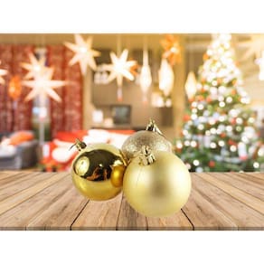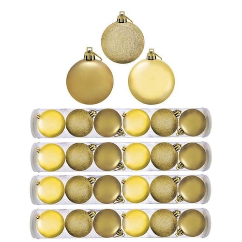 Kit 24 Bolas De Natal Decoradas Mista Dourado 8cm