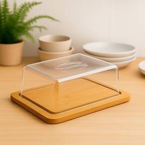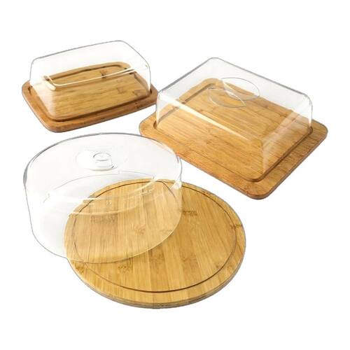 Kit Boleira + Porta Frios + Manteigueira Bambu Acrílico Pote