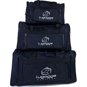 Descrição do Produto: Conjunto com 3 mala/ bolsa de mão de Viagem nos tamanho Pequena , Média e Grande São 3 Tamanhos de Bolsa de mão /Sacola de Viagem Sacola com bolso frontal e duas laterais com zípers, compartimento principal com fechamento em zíper, duas alças de mão e uma alça lateral para transporte transversal ou tiracolo ao corpo,PEQUENA:Medidas total: 37 cm de largura , 22 cm de lateral , 20 cm de altura medidas aproximadas devido a junções de costura Medidas dos compartimentos:- compartimento principal : 26 cm de largura x 22 cm de lateral x 20 cm de altura,- Bolso lateral 1 e 2 : 4 cm de largura x 22 cm de lateral x 20cm altura ,- Bolso frontal: 21cm de largura x 3 cm lateral x 12 cm altura,2 Alças de mão: 59 cm de comprimento x 2,50 cm de largura,1 Alça lateral: 110 cm de comprimento x 2,50 cm de largura. MÉDIA:Medidas total: 49 cm de largura x 26 cm de lateral x 26 cm de altura medidas aproximada devido as junções das costuras Medidas dos compartimentos:- Compartimento principal: 40 cm de largura x 26 cm de lateral x 26 cm de altura ,- Bolso lateral 1 e 2 : 5 cm de largura x 26 cm de lateral x 26 altura- Bolso Frontal: 35 cm de largura x 3 cm de lateral x 13 altura, 2 alças de mão: 77 cm de comprimento x 3,00 cm de largura1 alça lateral : 110 cm de comprimento x 3,00 cm de largura GRANDE: Medida Total: 60 cm da largura x 28 cm de lateral x 32 cm de altura as medidas são aproximadas devido as junções de costuras Medidas dos compartimentos:- Compartimento principal: 48,50 cm x 28 cm de lateral x 32 cm de altura ,- Bolso lateral 1 e 2 : 6,50cm de largura x 28cm de lateral x 32cm de altura,- Bolso frontal: 40cm de largura x 4cm de lateral x 17cm altura ,2 alças de mão : 78cm de comprimento x 4,0cm de largura1 alça tiracolo: 118 cm de comprimento x 4,0 cm de largura