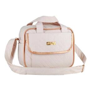 Características do produto: - Amplo espaço interno e um bolso grande com zíper - 2 Bolsos Frontais - 2 Bolsos laterais porta mamadeiras - 1 Bolso traseiro para o trocador - Alça de mão dupla e alça de Ombro removível e regulável - Acabamentos em metal dourado - Fácil de limpar - Impermeável