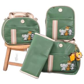 Kit bolsa maternidade tema safari com mochila e trocador Cor: verde militar Linha do kit tema safari.