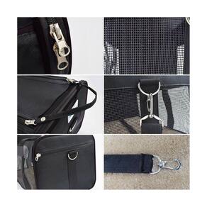 1. Bolsa Transpote para Pet Viagem Duke & Dixie A Bolsa PET é confeccionada em material resistente; costura de alta qualidade com zíperes no acabamento. Suas abas laterais em tela fornecem uma ventilação saudável para o animal e permite manter contato visual com seu PET. Acompanha um tapete macio para garantir o transporte no conforto ideal Carregue o seu PET facilmente pelas alças curtas ou pendure no ombro com a alça comprida. E se preferir encaixe na mala de mão de forma conveniente durante sua viagem
