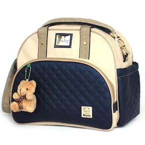 Kit bolsas bebe maternidade elegance enxoval miellu bolsas com trocador - 4 peças Cor: azul marinho Kit maternidade miellu - 4 pçs Kit maternidade desenvolvido pela miellu com a finalidade de proporcionar conforto, qualidade, estilo, durabilidade e praticidade. Projetado para aliar resistência com leveza, pois na maternidade carregamos muitas coisas, então precisamos de bolsas resistentes, mas também precisamos de bolsas leves, pois de peso já basta o que carregamos para o bebê... = Saiba mais sobre esse kit abaixo: Exterior - fabricada em material sintético antialérgico externamente, material que não descasca e de fácil limpeza; - alças reforçadas com fita cadarço de alta resistência para aguentar o peso da bolsa quando cheias; - matelasse no bolso frontal e nos bolsos laterais; - bolsos laterais dos dois lados para facilitar o dia-a-dia; - ferragens em dourado com fecho na alça maior para retirar, caso não deseje utilizar a alça de ombro, basta desconectar em um dos lados e guardar no bolso lateral Interior - forrada com bagum branco no fundo e nylon resinado no restante da peça, garantindo higiene, facilidade de limpeza e durabilidade por se tratar de nylon; - porta mamadeira térmico embutido, mais praticidade do que porta mamadeira a parte que se torna mais uma peça para carregar e dificultar o dia-a-dia com o bebê e proteção para a mamadeira, pois ela fica protegida dentro da peça, livre de poeira e sujeira; - repartição no interior para facilitar a organização Trocador Trocador portátil para ser carregado dentro da bolsa do bebê, sem ocupar muito espaço, fabricado em plástico laminado branco brilhoso que pode ser facilmente limpo, com travesseiro para a cabeça do bebê. Dimensões das peças que compoem esse kit: - bolsa grande 40cm de largura 28cm de altura 19cm de profundidade - bolsa média 31cm de largura 27cm de altura 15cm de profundidade - trocador portátil 68cm de altura 27cm de largura As 2 bolsas são equipadas com porta mamadeira térmico embutido Acompanha 1 urso pelúcia de 8cm Produto direto de fabrica, com de 90 dias a partir de quando o bebê nascer Produto nacional, feito por brasileiros