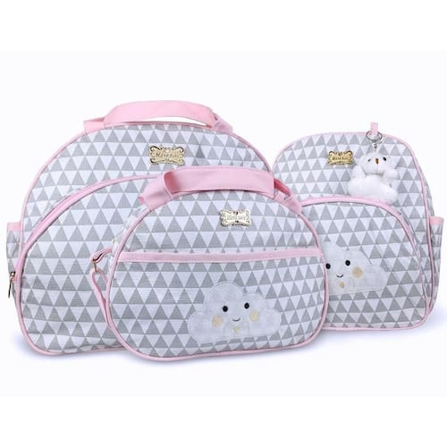 Kit Bolsas E Mochila Maternidade Prisma Baby Cinza E Rosa