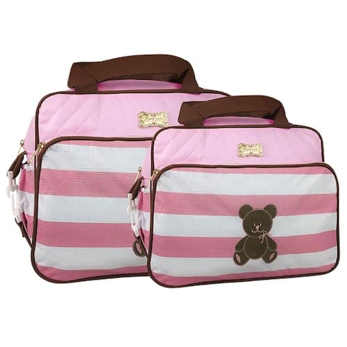 - A Bolsa Grande tem 02 bolsos laterais sem fecho, 01 bolso frontal com fechamento em zíper e fechamento principal em zíper.