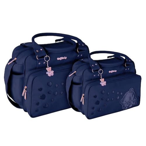 - A Bolsa Média tem 02 bolsos laterais, 01 bolso frontal e fechamento principal em zíper.