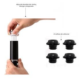 Esse kit protege o vinho do processo bacteriano e de oxidação que, de outra forma, mancharia o vinho. Em segundos, sua bomba de vácuo preservadora de vinho remove o ar de qualquer vinho tinto ou branco, você pode desfrutar de vinho fresco por até 7 dias Cada rolha de vinho inclui um conveniente símbolo de triângulo para marcar facilmente a data de abertura da garrafa. Esta função se torna muito útil quando você abre várias garrafas de vinho ao mesmo tempo. Este conjunto de bomba à vácuo e 4 rolhas de vinho é um lindo presente Você pode saborear e economizar até 4 garrafas de cada vez com estas rolhas reutilizáveis para garrafas de vinho. Use este conjunto para festas e ocasiões especiais. A bomba de ar para vinho é operada manualmente. O primeiro passo é tampar uma garrafa aberta com uma das rolhas; Em segundo lugar, coloque a bomba sobre o batente, certificando-se de que a bomba esteja firmemente pressionada contra o batente; Em terceiro lugar, bombeie o ar até sentir a resistência, geralmente cerca de 10-20, dependendo da quantidade de vinho na garrafa, então está selado Simples de usar com rolhas laváveis que podem ser inseridas facilmente e reutilizadas várias vezes. Este produto não é adequado para vinhos espumantes, como champanhe. Conteúdo: 1 bomba à vácuo para vinho 4 rolhas de garrafa reutilizáveis Medidas da Bomba: Altura: 12cm Diâmetro: 3cm Peso: 60g Medidas de cada rolha: Altura: 3cm Diâmetro: 4cm Peso: 13g Material: Polipropileno, acrílico e silicone Marca: Prana Dia Ean: 7898700841992