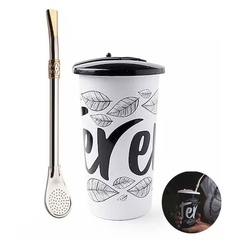 Esse copo para tereré possui tamanho ideal para preparar um mate refrescante, com capacidade para 450ml. O copo tereré é ótimo para o seu momento de matear ou para presentear aquele amigo querido. A cuia de terere possui tampa com abertura móvel de 360º que gira para ambos os lados, ou seja, você não precisa tirar a tampa para servir. Levando seu refresco para qualquer lugar sem perigo de sujar. Desfrute de bons momentos com o copo de tereré!