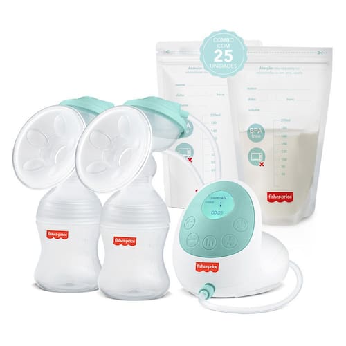 Kit Bomba tira Leite Eletrica Dupla Fisher Price + 25 Sacos Para Armazenar Leite Materno - BB1224KF