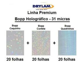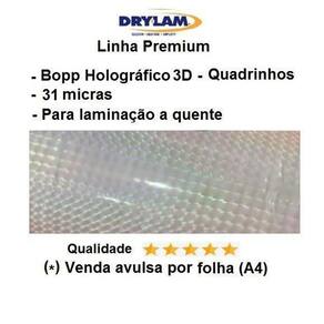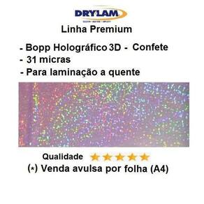 - marca drylam u. S. A. - linha premium - qualidade sem igual. - o melhor holográfico do mundo. - não tem emendas - não perde os holograma após a aplicação - bopp holográfico - espessura: 31 micras - temperatura de aplicação de até 110 graus
