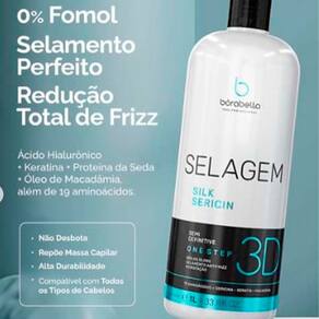 A Borabella Selagem 3D Semi Definitiva 1L proporciona cabelos selados, disciplinados, soltos, leves, macios, com brilho intenso, volume controlado, completamente livre do frizz e dos fios rebeldes. Nossa formulação contém ativos orgânicos modernos, e o exclusivo Blend Bio Complex formado pela sinergia de óleos vegetais, proteínas e aminoácidos que provem a reordenação da estrutura do córtex e da cutícula capilar, resultando em cabelos naturalmente soltos, macios, comportados e brilhante por um longo período
