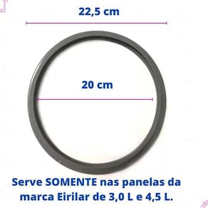 Borracha para panelas de pressão eirilar com fechamento externo de 3 e 4,5 litros. As borrachas de silicone 100% atóxico, não ressecam, são melhores para o desempenho da sua panela, fazendo com que a vedação seja total O anel de vedação deve ser substituído sempre que ficar rígido ou quebradiço.