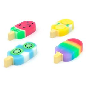 Kit Borrachas 4 Sorvete Picolé Borracha escolar em formato de picolés, seus amigos vão adorar. Com detalhes incríveis e super bem cuidados, o kit de borrachas contém 4 unidades de picolés em uma embalagem super fofa. Muito legal para quem ama objetos de papelaria fofa Lindas, as borrachas em formato de picolé deixarão o seu estojo ainda mais bonito e criativo.