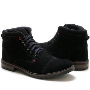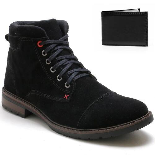 Kit Bota Coturno Masculino Camurça + Carteira Dia a Dia Leve - 39 - Preto