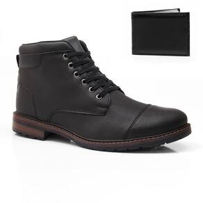 Kit Bota Coturno Masculino + Carteira Dia a Dia Casual Macio - 40 - Preto