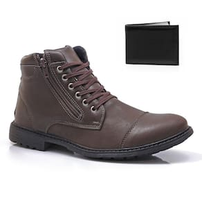 Perfeito para garantir um estilo moderno e cheio de personalidade, o Kit Coturno e acessório é a escolha certa para te acompanhar em seu dia a dia. Confeccionado em material sintético de alta qualidade, impressiona por sua durabilidade e resistência. Sua combinação de cano baixo e solado em borracha antiderrapante, forro interno em Jacar e fechamento em cadarço, garante total conforto com estabilidade e segurança aos seus pés. Para complementar o Kit conta uma linda carteira. Peça-chave para quem ama inovar e ousar, aposte no modelo com calça jeans e camiseta.