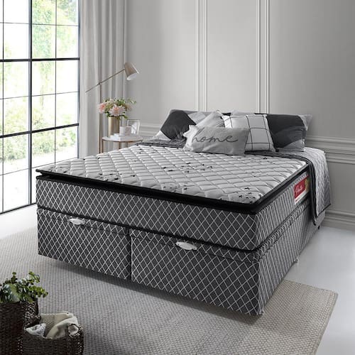O Kit de Colchão Porto é um composto por Espuma Flexível 100% Poliuretano Densidade 33kg/m de 3cm, - Densidade 26kg/m de 3cm Densidade 33kg/m de 21cm contendo no lado superior Tecido Malha 100% Poliéster - Gramatura 191g/m, Tecido inferior 100% Poliéster - Gramatura 97g/m e Revestimento Lateral 58% Algodão e 42% Poliéster com gramatura de 235g/m. e Malha 100% Poliéster Gramatura 150g/m e Cama Box Baú Coimbra é composto por Madeira maciça de eucalipto 100% reflorestada e chapa de fibra branca contendo no lado superior tecido antiderrapante 100% Poliéster - Gramatura 93g/m e Revestimento Lateral 58% Algodão e 42% Poliéster com gramatura de 235g/m. Espaço interno de 24 cm de altura e pés de Alumínio de 6cm.