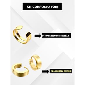 Kit Brinco Argola Furo + Piercing Pressão Orelha Hélix