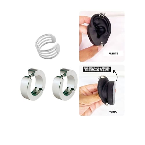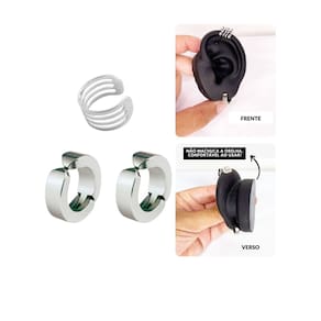 Kit brinco argola pressão prata cartilagem encaixe falso aço inox antialérgico - 3 peças Kit brinco argola pressão prata cartilagem encaixe falso aço inox antialérgico - 3 peças Kit brinco na cor aço inox prata é uma ótima opção para presentear um amigo ou namorado. Esse kit é bem completo, pois contém 1 peça do brinco de cartilagem e 2 peças 1 par do brinco pressão argola. Não precisa ter furo para usar - preço do kit com 3 peças - excelente qualidade ============================================== Fotos reais do produto na galeria Detalhes técnicos: Marca: visujóias Modelo: brinco pressão kit Diâmetro: 8mm Espessura do brinco: 4mm Incluso: 3 peças 2 peças 1 par de argola pressão e 3 peças brinco cartilagem . Material: aço inoxidável. Código do produto sku : 3093-2-3332-2-prata : a tem prazo de 6 meses. Todas as peças possuem tratamento antialérgico. ============================================== P:minha compra é segura R:toda compra que é feita aqui está em ambiente seguro, isso significa que se caso ocorra algum imprevisto faremos o estorno de seu pagamento. R: sim. P: precisa de furo para usar O brinco fica caindo R: não não precisa de furo para usar. Colocando o brinco da maneira correta, não fica caindo, pelo contrario, fica bem fixo. Temos um vídeo na galeria explicando como usar. P: produto é a prova d'água R: sim, pode usar em piscinas e praias que não escurece. P: tem R: sim, todos os nossos produtos tem de 6 meses, contra defeitos de fabricação. Todas as informações de cuidados são enviados junto com o produto. P: posta em quanto tempo P: posso trocar se não servir R: sim, enviamos nosso contato junto com o produto para orientação sobre troca. P: posso devolver se não gostar R: sim, caso não goste do produto é só entrar em contato conosco que iremos orientá-lo como efetuar a devolução. Dúvidas Pergunte à vontade, estamos aqui. ficaremos felizes em responder rapidamente. Aguardamos sua compra e estamos ao seu dispor : Marca: Visujoias