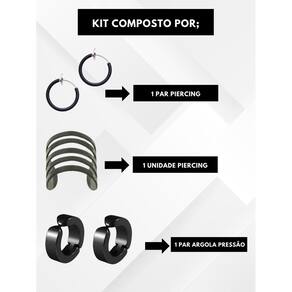 Kit brinco argola pressão preto piercing cartilagem encaixe garra aço inox - 5 peças Kit brinco argola pressão preto piercing cartilagem encaixe garra aço inox - 5 peças Kit brinco na cor aço inox preto é uma ótima opção para presentear um amigo ou namorado. Esse kit é bem completo, pois contém 3 peça do brinco de cartilagem e 2 peças 1 par do brinco pressão argola. Não precisa ter furo para usar - preço do kit com 5 peças - excelente qualidade ============================================== Fotos reais do produto na galeria Detalhes técnicos: Marca: visujóias Modelo: brinco pressão kit Diâmetro: 8mm Espessura do brinco: 4mm Incluso: 5 peças 2 peças 1 par de argola pressão e 3 peças brinco cartilagem . Material: aço inoxidável. Código do produto sku : 3093-1-3331-1-3144-1-preto : a tem prazo de 6 meses. Todas as peças possuem tratamento antialérgico. ============================================== P:minha compra é segura R:toda compra que é feita aqui está em ambiente seguro, isso significa que se caso ocorra algum imprevisto faremos o estorno de seu pagamento. R: sim. P: precisa de furo para usar O brinco fica caindo R: não não precisa de furo para usar. Colocando o brinco da maneira correta, não fica caindo, pelo contrario, fica bem fixo. Temos um vídeo na galeria explicando como usar. P: produto é a prova d'água R: sim, pode usar em piscinas e praias que não escurece. P: tem R: sim, todos os nossos produtos tem de 6 meses, contra defeitos de fabricação. Todas as informações de cuidados são enviados junto com o produto. P: posta em quanto tempo P: posso trocar se não servir R: sim, enviamos nosso contato junto com o produto para orientação sobre troca. P: posso devolver se não gostar R: sim, caso não goste do produto é só entrar em contato conosco que iremos orientá-lo como efetuar a devolução. Dúvidas Pergunte à vontade, estamos aqui. ficaremos felizes em responder rapidamente. Aguardamos sua compra e estamos ao seu dispor : Marca: Não Informado Ean: 7732647216256