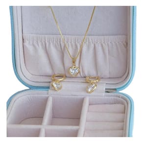 Conjunto Feminino Brinco e Colar Quadrado Turmalina Cravejado Pedra Zircônias Brinco e Colar com banho Paládio tecnologia antialérgico. Banhado em Ouro 18k.