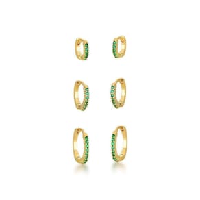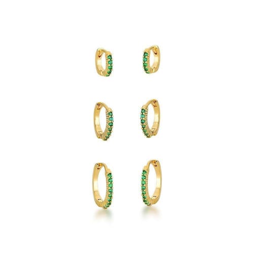 Kit Brincos Argola com uma fileira Zirconias Verdes Banhado a Ouro 18k