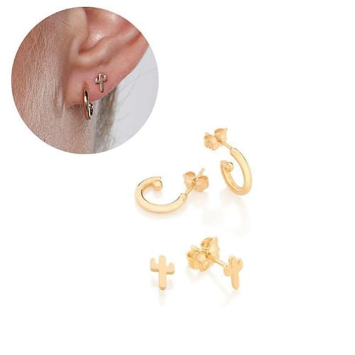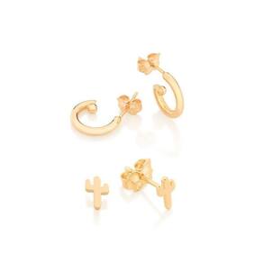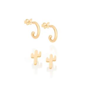 Kit brinco formado por um par no formato de cacto, e um par de argolinhas,