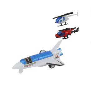 - Contém: 2 helicópteros e 1 Foguete; - Material: Plástico; - Acima de 3 anos; - Cor: colorido; - Tamanhos: Avião 17cm de comprimento/ Helicopteros 9cm de comprimento; - INMETRO: 007710/2021.