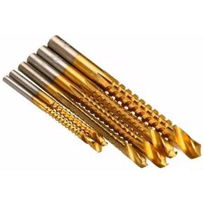 Kit Brocas Corte Lateral e Escalonadas 9 Peças HSS Titânio Combo exclusivo contendo 1 Kit com 6 Brocas de Corte Lateral em Aço com revestimento em Titânio Charbs e 1 Jogo com 3 Broca Escalonada HSS 3 a 20mm Titânio Charbs. Kit com 6 Brocas de Corte Lateral em Aço com revestimento em Titânio Charbs. - Marca: Charbs - Medidas: 3, 4, 5, 6, 6.5 e 8mm - Material: HSS Aço de alta velocidade 4241 - Material da superfície: titânio revestido - Uso em furadeiras de 3/8 ou 1/2 - Maior durabilidade - Para corte em madeira, alumínio, placas de plástico e etc - Broca de corte com bordas afiadas, propiciando um corte mais rápido e com menos esforço - Nunca Ultrapasse a velocidade de 20.000 rpm - Embalagem: Blister - Peso bruto: 95 gramas - : 90 dias Jogo com 3 Broca Escalonada HSS 3 a 20mm Titânio Charbs - Marca: Charbs - 3 Brocas escalonadas: 4-12, 4-20 e 3-12 - Encaixe: Hex 1/4 - Comprimento da haste: 20mm - Material: aço rápido HSS - Revestimento de titânio - 1 Broca escalonada 4-12mm com 5 passos: 4, 6, 8, 10 e 12mm - 1 Broca escalonada 4-20mm com 9 passos: 4, 6, 8, 10, 12, 14, 16, 18 e 20mm - 1 Broca escalonada 3-12mm com 11 passos: 3, 4, 5, 6, 7, 8, 9, 10, 11 e 12mm - Broca de alta qualidade e durabilidade - Aplicação em metal, madeira, plástico, PVC, cobre, níquel e outros metais não ferrosos - Espessura máxima da chapa: 4mm - Pode ser utilizada em todas as máquinas em modo de rotação sem impacto - Possibilidade de perfurar diversos diâmetros com uma só broca - Utilizar óleo de corte para refrigeração e aumento de vida útil - Acompanha bolsa para armazenagem - Peso bruto: 140 gramas - : 90 dias