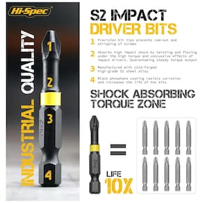 RÁPIDO DIY Dirija em superfícies duras e gire porcas apertadas com o conjunto de bits de chave de impacto Hi Spec. HIGH TORQUE Supera as brocas Cr V padrão quando o torque máximo é fornecido na fixação hard stop. SET FOR LIFE Obtenha bits essenciais, incluindo Torx, Pozidriv, Hex Allen com drivers de porca HVAC e muito mais. PARA IMPACTO As pontas usinadas reduzem a decapagem e o ressalto. Uma zona de torção distribui tensão excessiva. TEMPERADO Aço resistente a choques S2 e revestimentos protetores de fosfato melhoram a ductilidade e a dureza Marca: Não Informado
