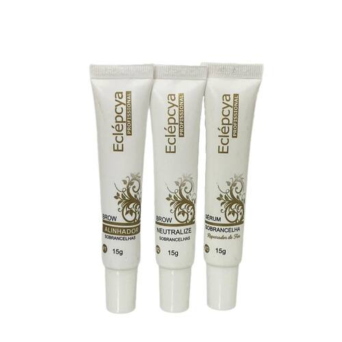 Kit Brow Lamination 15g - Eclepcya Kit Brow Lamination: Alinhador Brow 15g - Eclépcya Passo 1 Neutralize Brow 15g - Eclépcya Passo 2 Sérum reparador de fios 15g - Eclépcya Finalização Procedimento Brow Lamination/ alinhamento e alisamento das sobrancelhas. O Alinhador Brow para sobrancelhas irá ajudar na organização dos pelos de acordo com o design desejado. Além de alinhar para deixar com aspecto natural, é possivel seguir a tendencia Brow Lamination com os pelos levantados e aspecto mais selvagem. O Neutralize Brow para sobrancelhas finaliza o processo de alinhamento dos fios. Deve ser utilizado após o Alinhador Brow. O Sérum para sobrancelhas Eclépcya promove resistência e maciez a fibra dos fios. Nutre, devolve o viço e o aspecto saudável. Pode ser utilizado nos procedimentos de Brow Lamination, Alisamento das sobrancelhas, nutrição após design e spa das sobrancelhas. Modo de uso: Aplique o Alinhador Brow no sentido dos Fios uma camada suficiente para cobrir a área a ser realizada o procedimento. Alinhe os fios e deixe agir até que obtenha maleabilidade e use o método MTA ou apliação mecânica se necessário. Limpe o Alinhador Brow e aplique em seguida o Neutralize Brow. Alinhe os os fios e deixe agir pelo mesmo tempo que o alinhador. Após a pausa, remova completamente. Finalize com o Sérum para sobrancelhas Eclépcya. Mais detalhes em nosso treinamento. Tabela de estimativa de ação passo1: - fios finos 8-10 minutos - fios intermediários entre 10-12 minutos - fios grossos entre 12-15 minutos - fios super grossos 15-20 minutos e se necessario reaplique. Marca: Não Informado