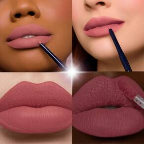 Batom:Preencha os lábios com o produto, deslizando o aplicador com leveza para espalhar uniformemente. Para um acabamento perfeito, espere o batom secar completamente após a aplicação.