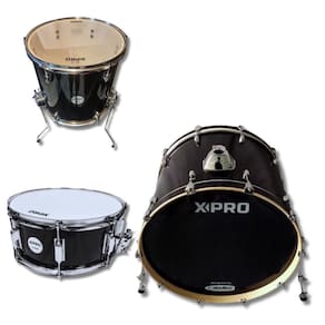 Bumbo 20 x 16 aro madeira 10 afinações preto + caixa 14 x 6 casco madeira 8 afinações preta + surdo 14 x 14 madeira 6 afinações preto 3 pés stage x-pro